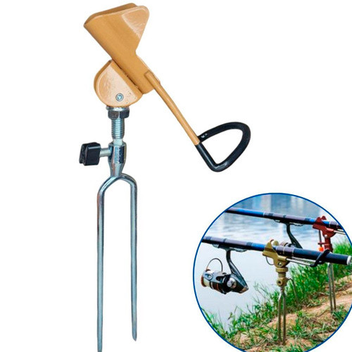 Універсальна комлева підставка для фіксування вудилища за рукоятку. Складається з двох металевих частин: тримача і двох загострених штирів, які легко занурюються в грунт.